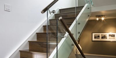 Glass has found its way into staircases, balcony's and hallways. Glass opens up your space and shows every detail that went into the building of your home. We have several styles which mount on the side or directly on top of the surface you need blocked off. Each style comes in a variety of finishes. We also offer custom top rails and glass mounted handrails made of steel, wood or Lucite.
